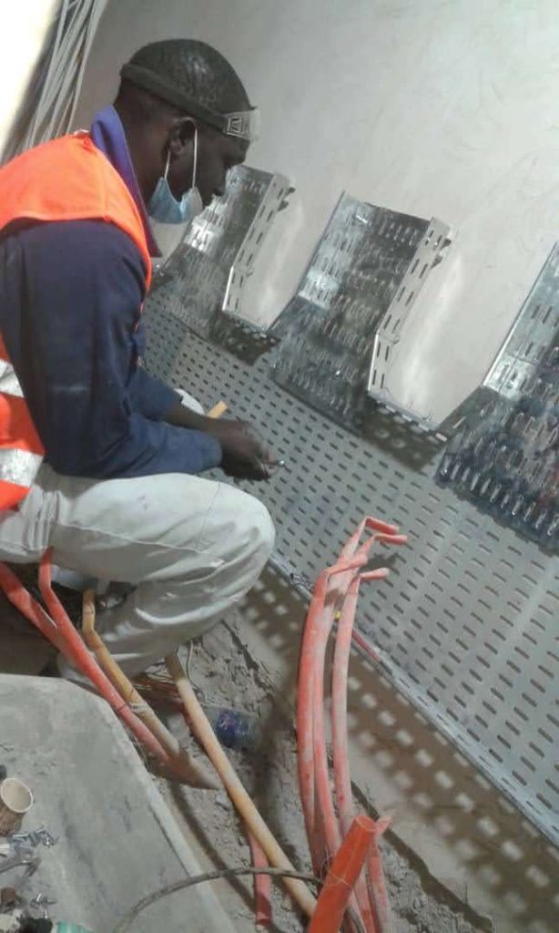LA POSE DES CHEMIN DE CABLE DANS LES LOCAUX TECHNIQUES DU PROJET DE SENEGINDIA
